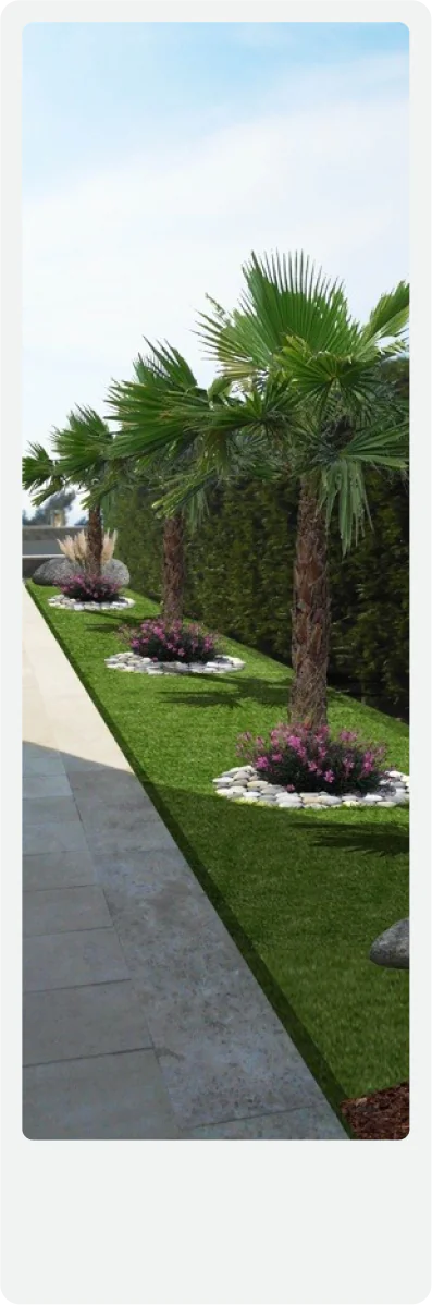 ستحصل على فريق متخصص يملك خبرة في تنسيق الحدائق بشكل متكامل يشمل التصميم والتنفيذ والصيانة. كما نوفر حلولًا مبتكرة تشمل زراعة العشب الطبيعي، وتركيب الأشجار والنخيل، بالإضافة إلى تنفيذ شلالات ونوافير تزيد من جمال وفخامة المكان.